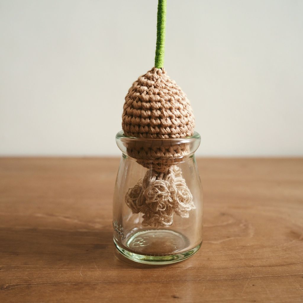 棉線手工編織球根小白花。