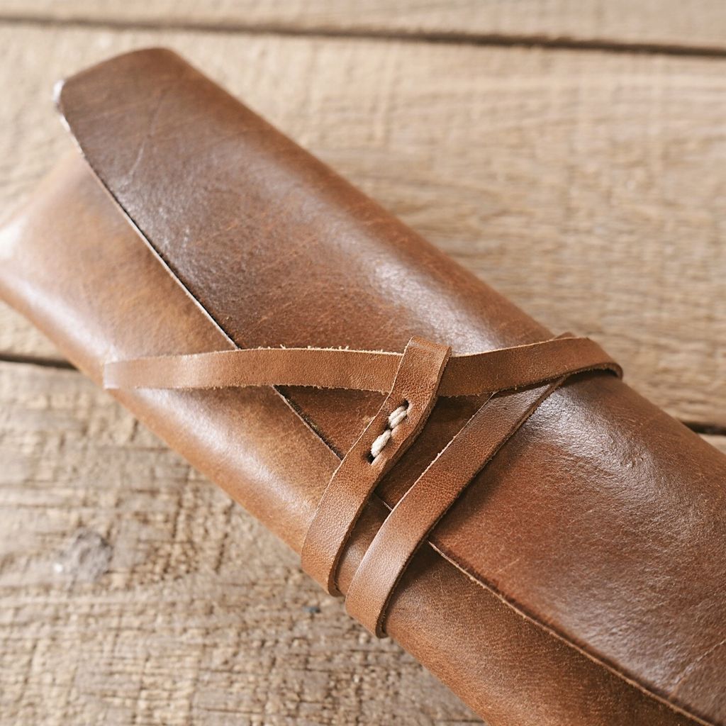 散發著成熟的品味,帶點不羈的態度!讓我一眼就愛上這款牛皮筆袋。沒有多餘的設計,或加重視覺的五金配件,以手工剪裁、穿洞、縫線,以及簡約不對稱的收邊設計,獨具風格。除了當筆袋,也可以承裝細框眼鏡、或簡單的化妝小物喲。
